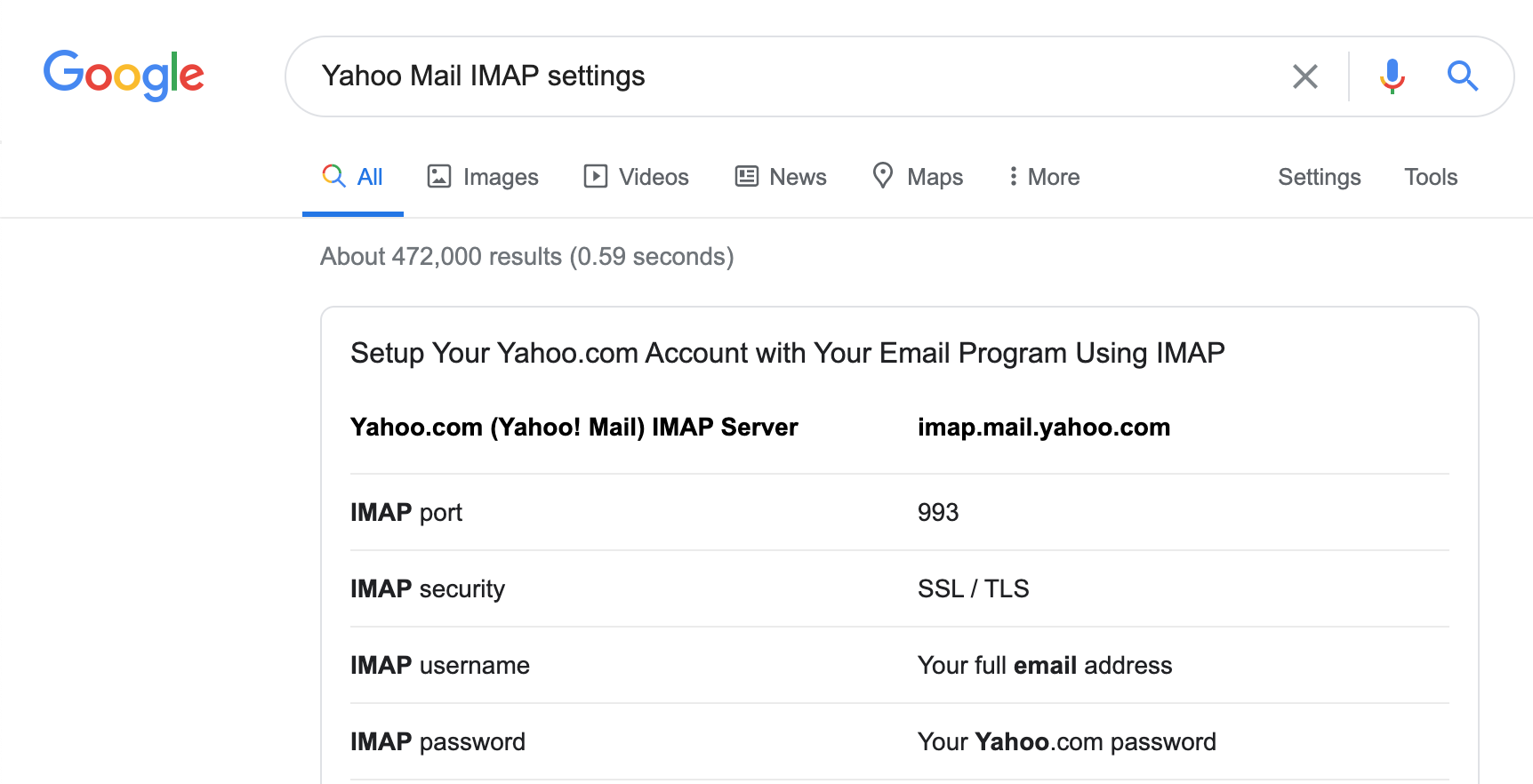 IMAP Details for Popular Providers