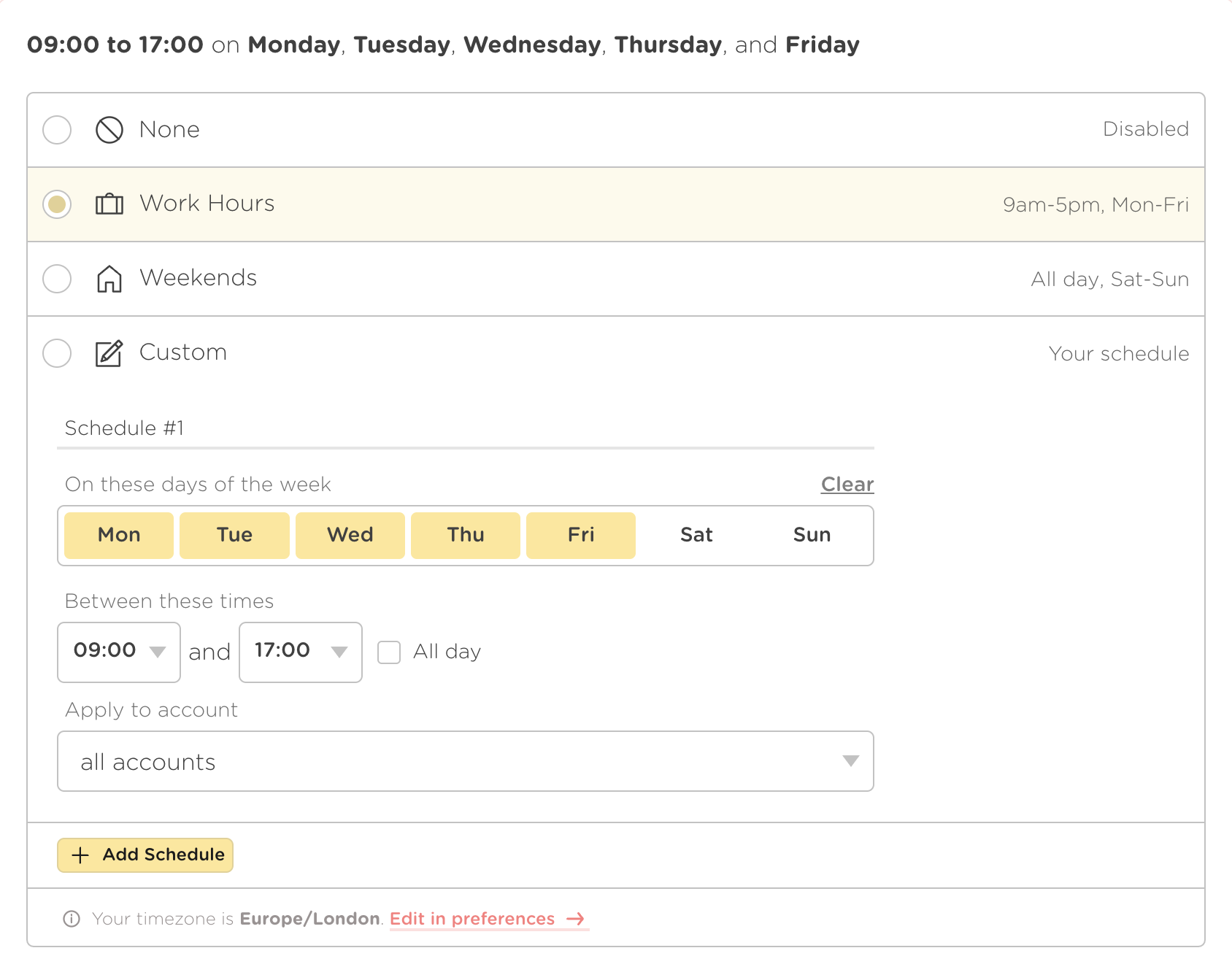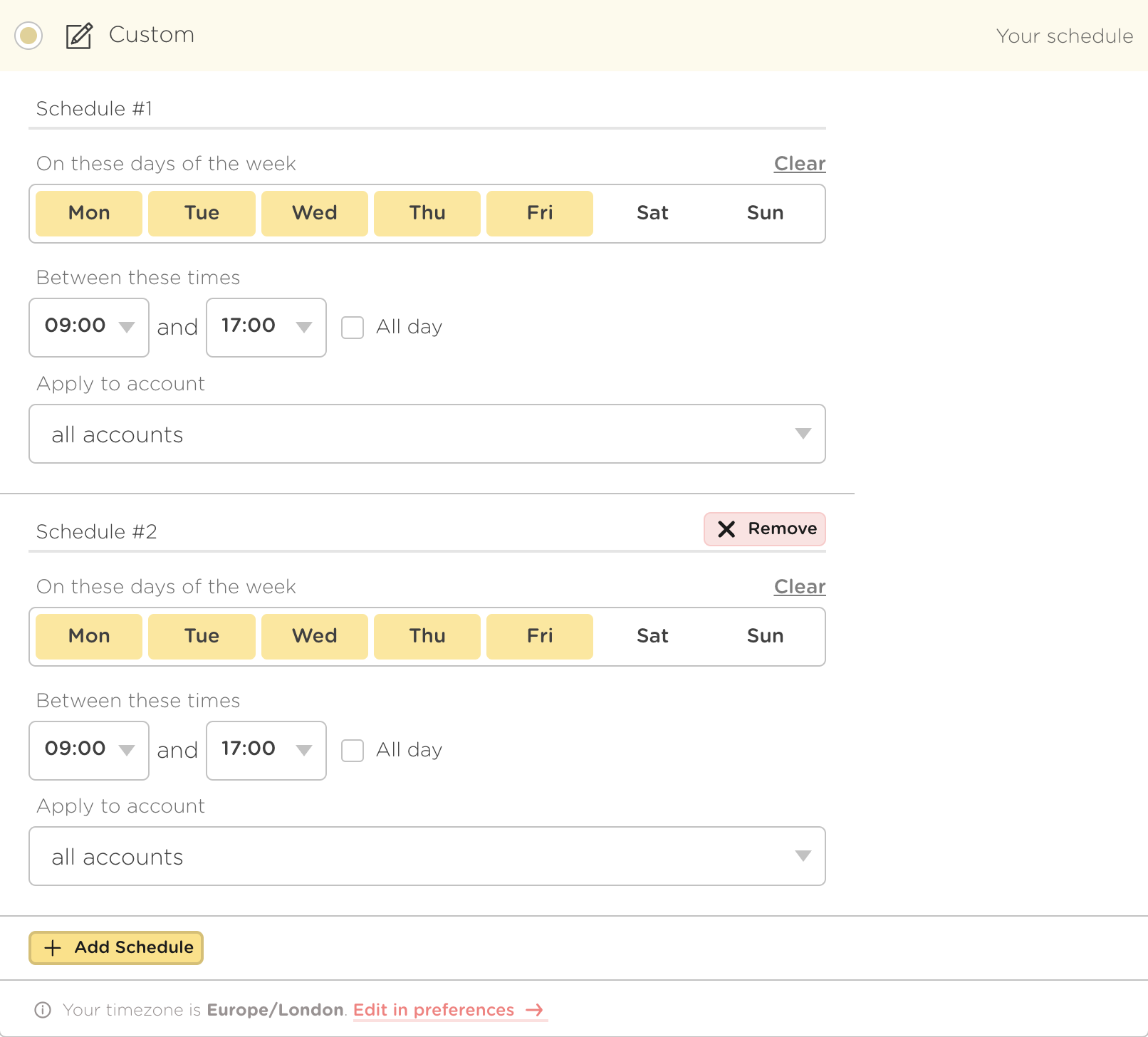 You can choose from one of our preset schedules or create your own!