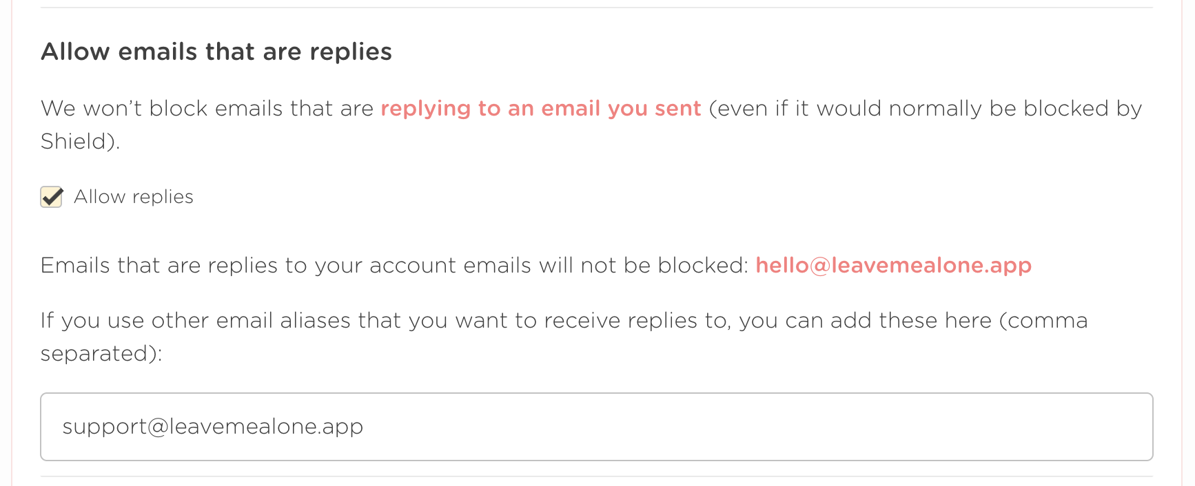 If you have other email aliases you can also allow replies to these by adding them on the settings page.