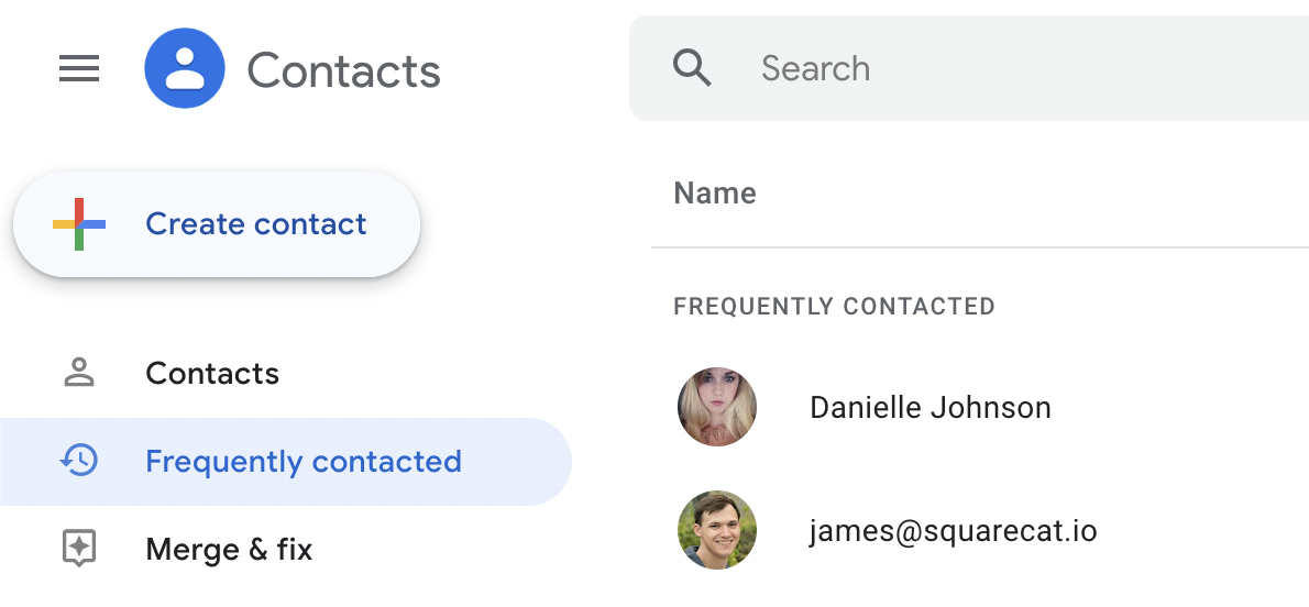 When the contacts page loads, click "Frequently Contacted" on the left hand side: