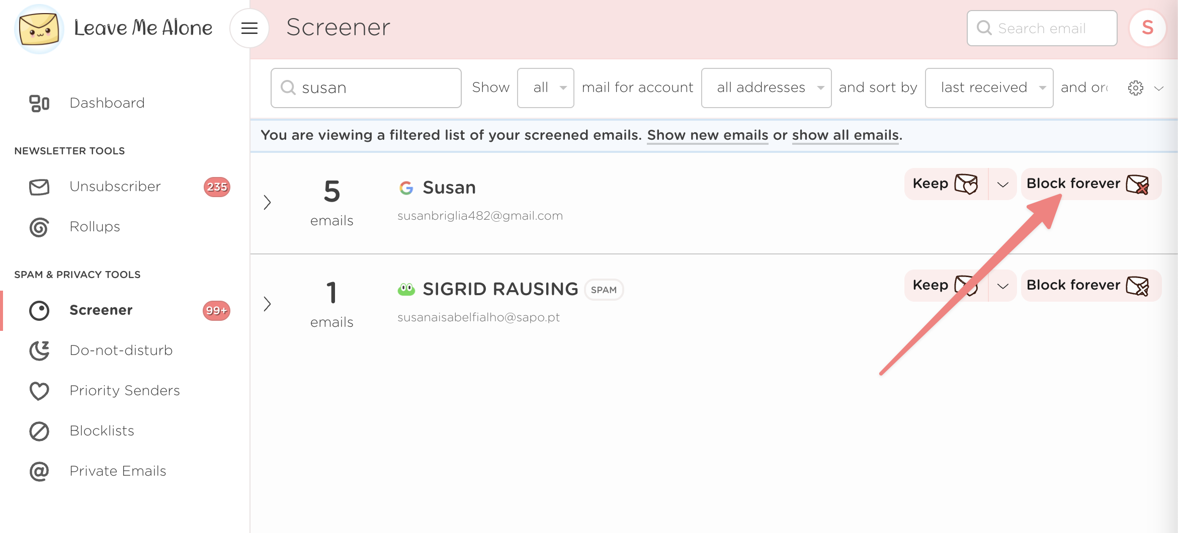 Alternatively, clicking the "Keep" button will undo the block and set the item to keep instead.