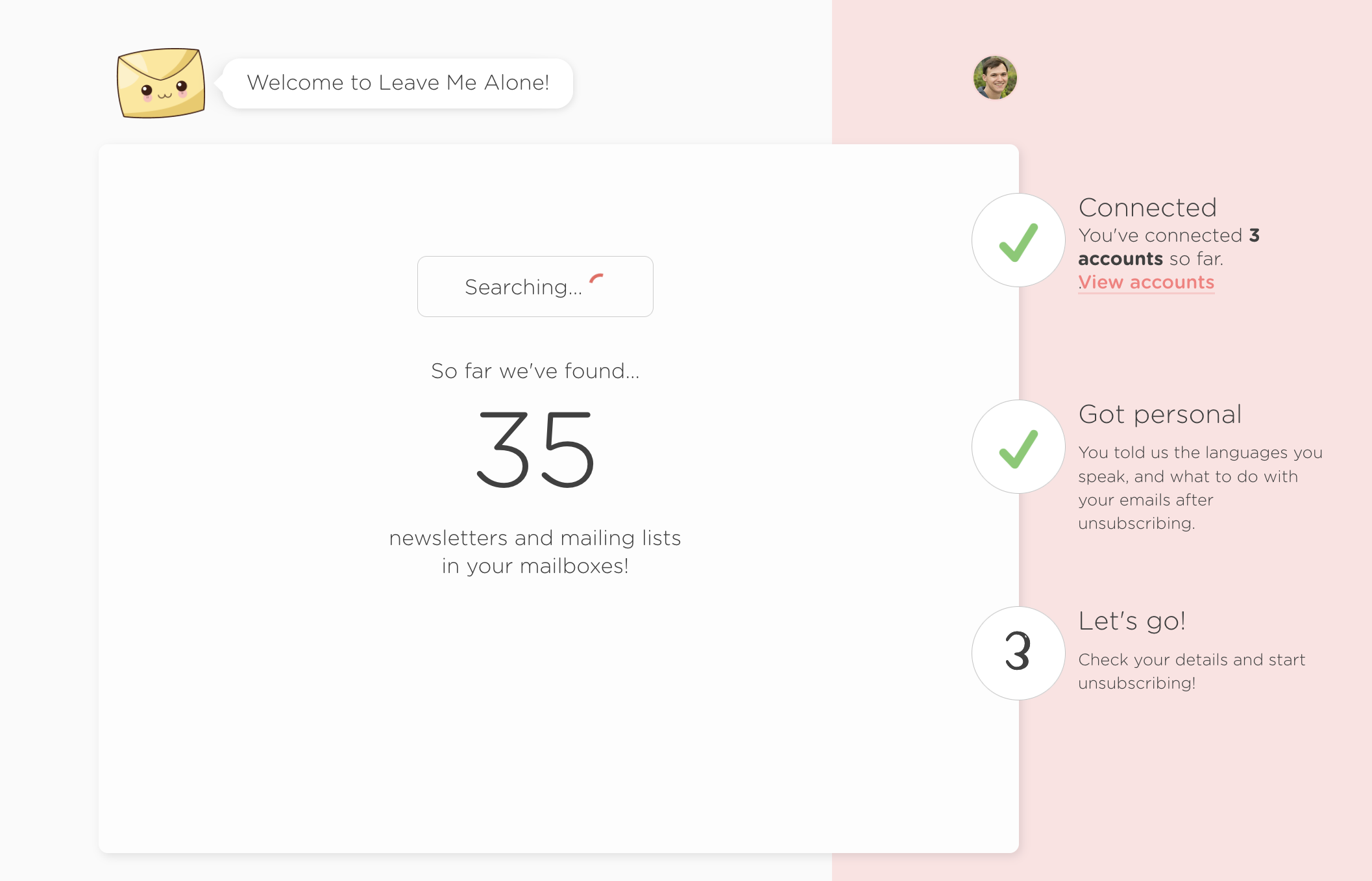 Now we'll start scanning your mailbox for subscriptions and newsletters! - This could take a few minutes, so feel free to go grab a coffee whilst you wait. ☕️
