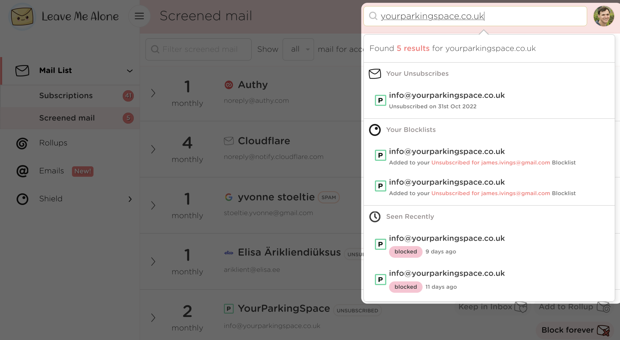 How to find emails within the Leave Me Alone system